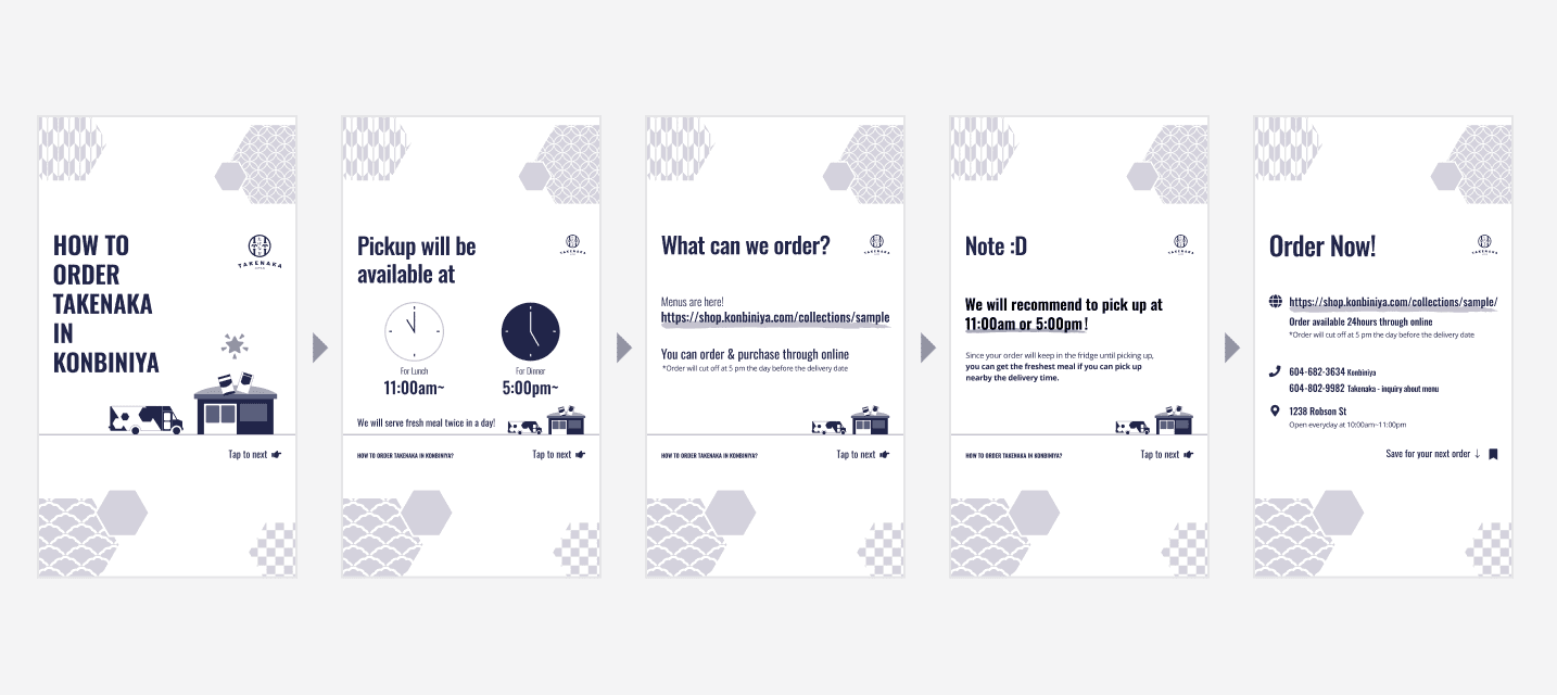 Composed posts for Instagram stories to introduce a website order system for one of their vendors.