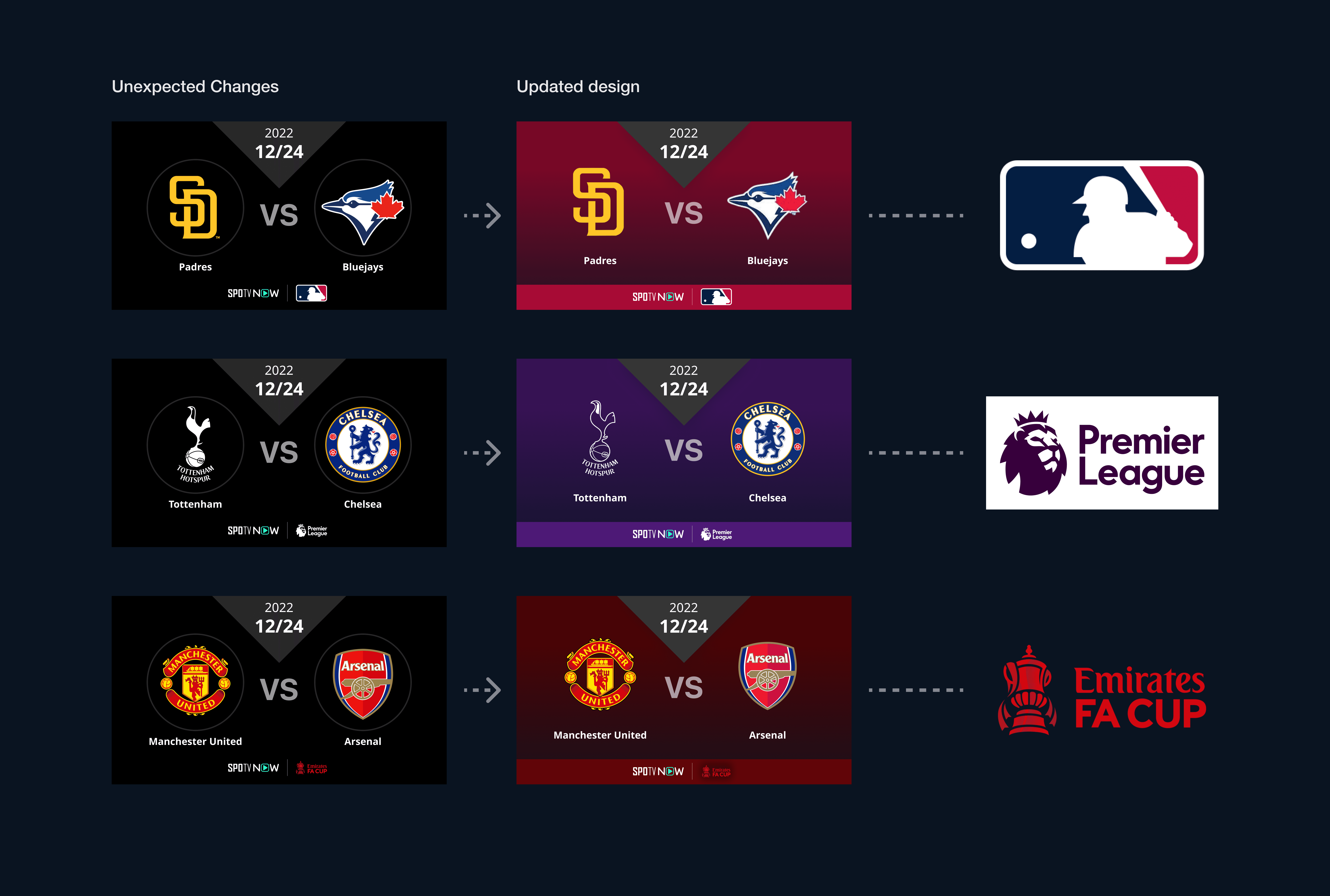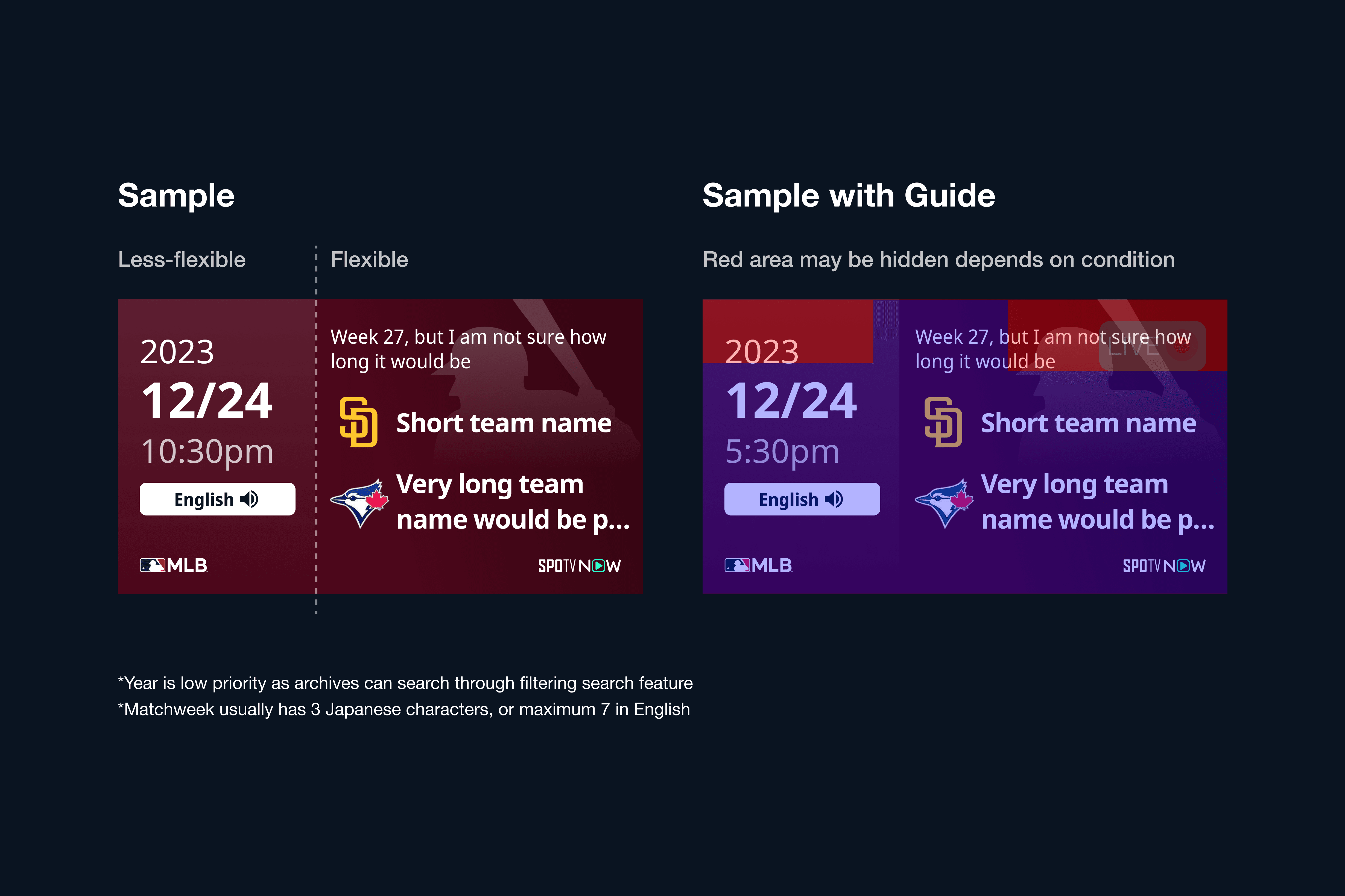 Since TV is an important device to watch sports, considering accuracy on both TV and mobile is key. Since both thumbnails could look very tiny by the assumption of TV which could be watched from 3 meters away in the living room, I made font size bigger as much as possible while keeping the dynamics of weights.