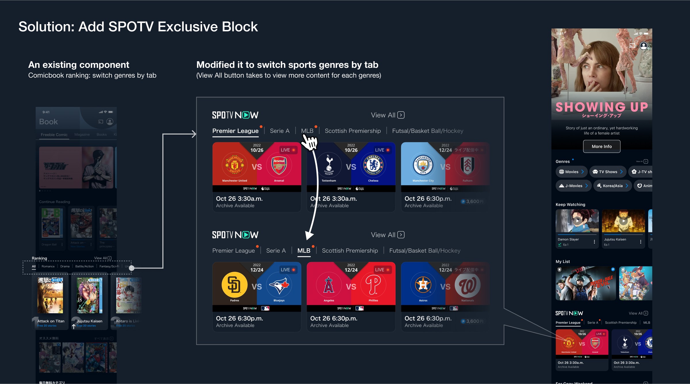 Besides that, since SPOTV is part of our service, we wanted to emphasize it while users explore our app.