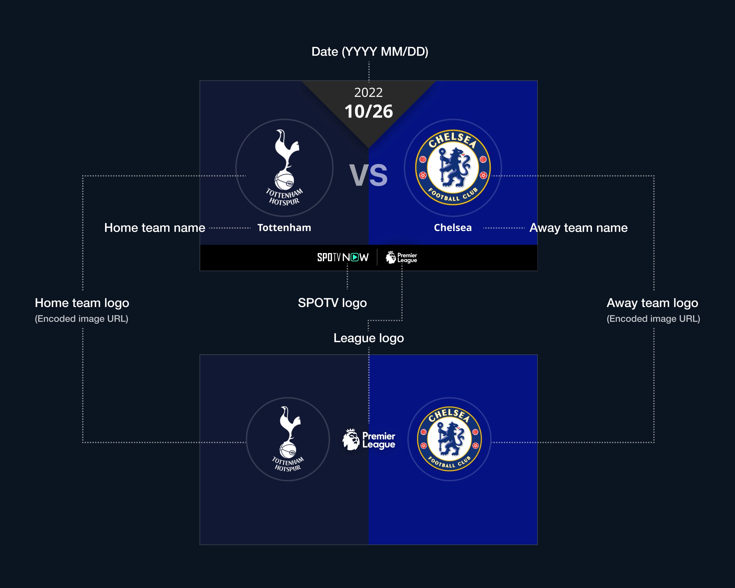 Since the thumbnail size would be quite small due to the device size, I tried explaining each team by color and logos rather than characters. Since all the necessary meta is at the bottom or side of each thumbnail, added only essential information such as date, team, league logo and SPOTV logo.